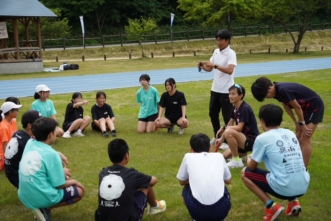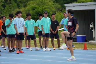 合宿期間中の6月22日(日)には、当エリア内の日和田ハイランド陸上競技場にて、地元の陸上競技クラブ「飛騨高山A.S.C」に所属する中学生36名との交流イベントとして、陸上教室を開催しました。